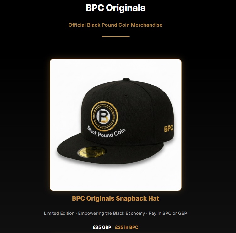 The BPC Originals Snapback marks the first official Black Pound Coin physical product. Designed and developed from December 2025, this milestone bridges digital value and real-world fabrication. Each limited-edition hat contributes directly to Black Pound Coin liquidity, introducing a new model where merchandise strengthens the ecosystem. This phase represents the transition from concept to production-ready assets.